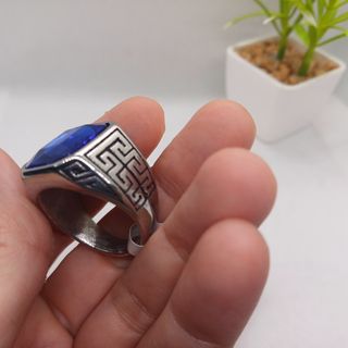 Elegante anillo de acero de Titatino,Hipoalergénico con una deslumbrante piedra azul. - Diseño con detalles grabados. - Piedra central de cristal de topacio azul. - Acabado en plata.