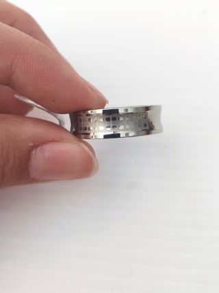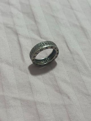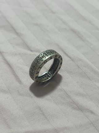 Elegante anillo de la marca Bvlgari. - Diseño con textura. - Acabado plateado.