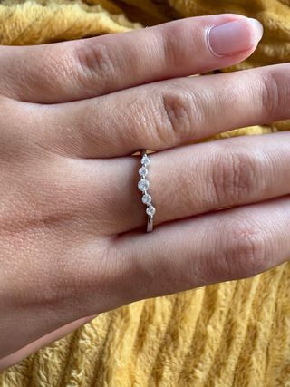 Precioso anillo de plata de ley 925 con circonitas engastadas. Es una pieza elegante y delicada. - Diseño moderno y sofisticado. - Circónitas brillantes. - diámetro de interior 20,2 mm