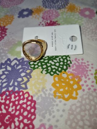 Elegante anillo de la marca Parfois con un diseño único. - Baño de oro. - Detalle central en piedra blanca. - Talla S (diámetro 12. mm).