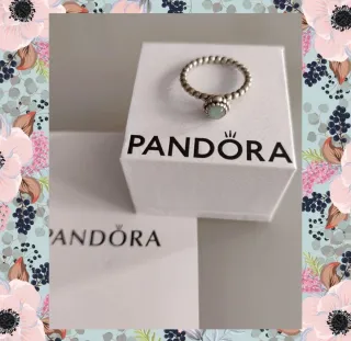 Anillo de la marca Pandora con un diseño delicado y una piedra central. - Banda con detalle de bolitas. - Piedra de color turquesa. - Tono plateado.