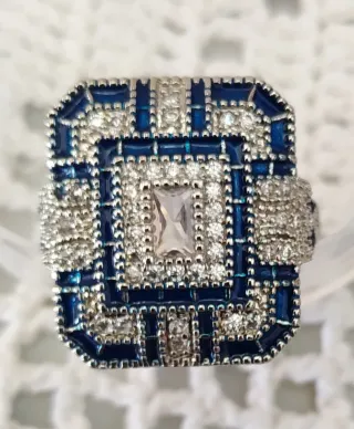 Anillo Plata 925 con Circonitas Azules y blancas .