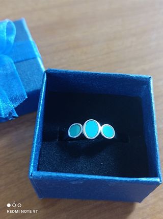 Precioso anillo de plata de ley con sello 925 y piedra preciosa turquesa auténtica natural. Pieza única, trabajo de orfebrería francesa. Muy exclusivo. Se envía con cajita para regalo. #(joyas, regalos, pendientes, pulsera, collar, colgante, cadena, cordón, sortija, alianza, compromiso, brazalete, gargantilla, tobillera, diamantes, brillantes, rubí, esmeralda, perlas, coral, zafiro, topacio, amatista, madreperla, labradorita, piedra de luna, adularia, ámbar, granate, ópalo, cuarzo, Swarovski, Tous, Hand Soul BCN, Dior, Chanel, ágata, prehnita, rodocrosita, oro, platino, bolso, Navidad).