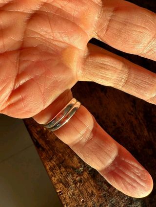 Anillo plateado con un diseño de cola de sirena y una pequeña piedra azul. - Sin estrenar. - Comprado en Temu - Es un accesorio llamativo y elegante. - Diseño de cola de sirena. - Detalle de piedra azul. - Acabado plateado.