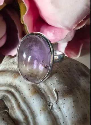 Elegante anillo con una piedra de ametrino la unión natural de dos gemas, amatista y citrino, en talla ovalada. - Elaborado en plata de ley. - La piedra presenta tonalidades moradas (amatista) y doradas (citrino). #(sortijas, alianzas, alhajas, joyas, joyería, pulsera, pendientes, brazalete, tobillera, cadena, cordón, colgante, gargantilla, choker, collar, regalos, complementos, broche, minerales, gemas, piedras preciosas, piedras semipreciosas, piedras naturales, ópalo, ámbar, coral, turquesa, aguamarina, amatista, granate, zafiro, lapislázuli, rodocrosita, fluorita, turmalina sandía, cuarzo, Navidad).