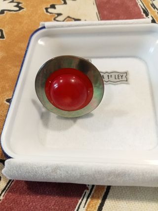 Anillo de plata, coral y nácar. Marca Nature. Talla ajustable. Nuevo. Solo venta por envío.