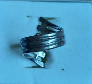 Conjunto de dos anillos de plata: - 3 aros entrelazados (diámetro interior 16.9 mm) - un aro fino ondulado en la parte superior. (diámetro interior 16.5 mm)