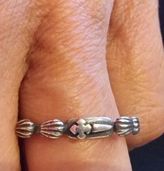 Anillo estilo rosario. - Diseño con detalles. - Color plateado.
