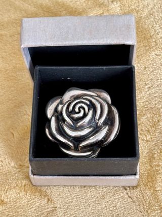 Rosa de plata de tamaño grande para un dedo delgado.