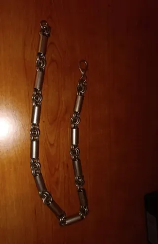 Conjunto de tres cadenas con un diseño moderno y elegante. - Cada cadena está compuesta por eslabones cilíndricos y anillas. - Cierre de mosquetón en una de las cadenas. Están totalmente nuevas
