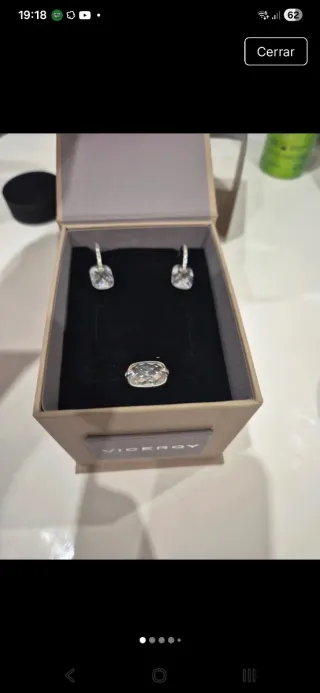 Conjunto de pendientes y anillo (talla 16) de Viceroy. En su caja listo para regalar.