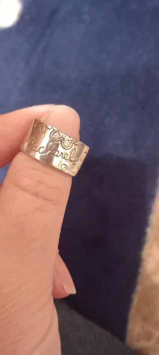 Anillo de plata 925 con diseño grabado. - Diseño floral. - Inscripción de la marca. - Detalles brillantes.