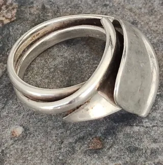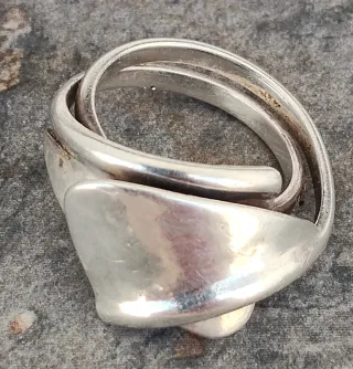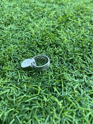 Anillo plateado con un diseño moderno y abierto. - Diseño de líneas entrelazadas. - Acabado brillante. - 9 milímetros de grosor en su zona más ancha. Bisutería muy fácil de llevar y estéticamente muy bonito. En caso de que haya alguna otra cosa de mi muro que te interesase y procediera el envío, coméntamelo y te haría un pack a fin de que ahorres dinero en gastos. Debido a lo ridículo del precio, no hago envíos a no ser que sea junto con otro producto. Gracias