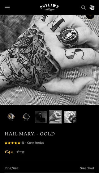 anillo de la marca Outlaws, modelo Hail Mary. lo vendo por falta de uso (muy elegante, siempre me preguntan donde lo compre) medida 11 (20.20 mm- 20.68mm) - Diseño con manos rezando y detalles de cruz. - Combinación de colores dorado y plateado.