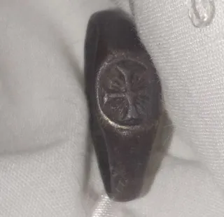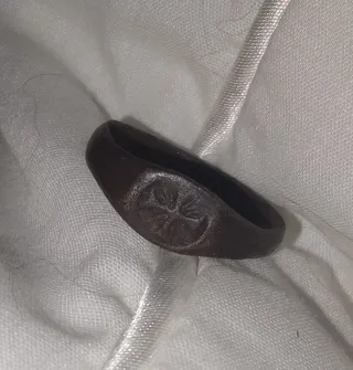 Anillo con diseño grabado, inspirado en la iconografía templaria. - Material: Plata. - Color: Plateado con detalles oscuros por el grabado.