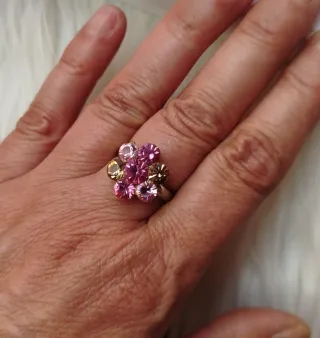 *Elegante anillo de fantasía con un diseño floral adornado con piedras en tono rosa y detalles plateados. *Diseño floral con múltiples pétalos. *Acentos de piedras transparentes. * Banda con detalles intrincados. *Elegante y atemporal. *Hago envíos por Wallapop e Inpost.