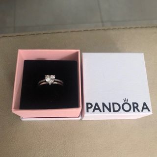 Elegante anillo de Pandora con un diseño de corazón central y detalles brillantes. - Diseño de corazón. - Banda adornada con pequeñas circonitas.