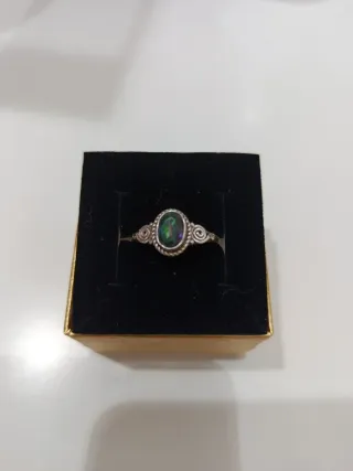 Anillo de plata con cuarzo mistico central ovalado - Diseño con detalles en espiral. - Piedra con reflejos iridiscentes.