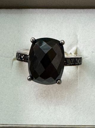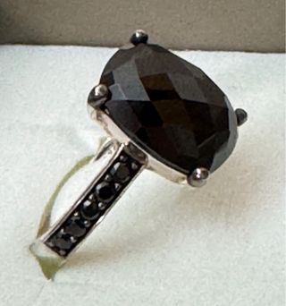 Elegante anillo Thomas Sabo con detalles en plata y ónix. Un accesorio llamativo. - Diseño con gran piedra central facetada. - Banda adornada con pequeñas piedras negras. - Montura de plata.