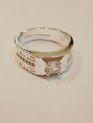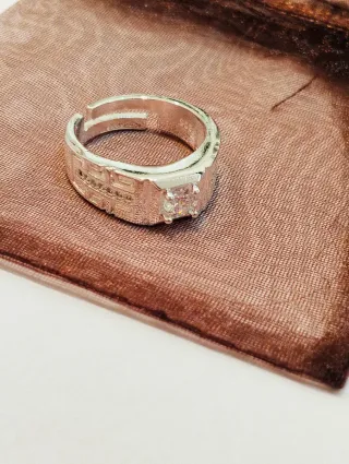 Anillo de plata para hombre con un diseño moderno y elegante. Es ajustable para adaptarse cómodamente a diferentes tamaños de dedo. - Elaborado en plata.sello925 - Diseño con circonita central. - Detalles grabados en la banda.