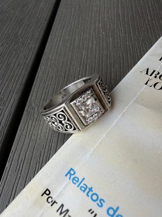 (No hago envios, trato en persona) Anillo de plata 925 con un diseño de sello para hombre. Presenta circonitas engastadas que le dan un brillo especial. (No se la talla, a un hombre le viene genial) - Material: Plata 925 - Piedras: Circonitas - Diseño: Sello cuadrado con halo de pavé La calidad de este engaste manual es comparable a la de piezas mucho más costosas. Te ofrecezco una pieza de lujo accesible."