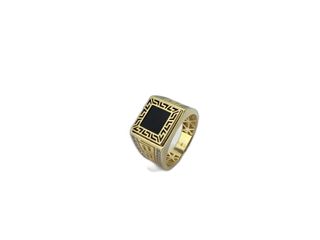 SELLO CUADRADO GRECA MEDUSA ONIX CIRCONITA Oro18K