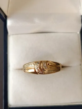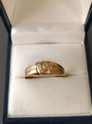 Anillo en oro 18k laminado ideal para chica, elegante y bonito. Con sello 18 k!!!Tiene un brillo precioso y un diseño fino que queda genial puesto, perfecto tanto para el día a día como para ocasiones especiales. Está totalmente nuevo, sin uso, en pertecto estado. Ideal también para regalo. No hago cambios.