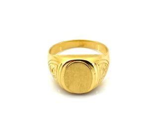 Precioso anillo de hombre de oro de 18k. Es un sello con un diseño sobrio y elegante. gramos: 2.8 talla: 19 contraste: Sí tipo de oro en kilates: oro primera ley (oro 18k con piedra) detalles joya: sello oro 18k nuevo tipo versace piedras: 0.0 peso piedras: 0.0 genero-tipo: unisex tipo de piedra: onix piedra: Sí - Material: oro de 18 quilates. - Diseño: sello con detalles grabados. - Ideal para un regalo especial.
