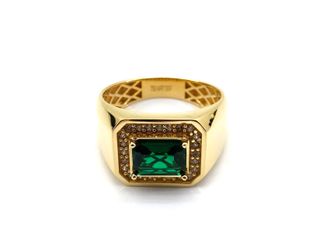 Precioso anillo de oro amarillo de 18k con una esmeralda engastada. Luce imponente y elegante. Ficha técnica gramos: 7.35 talla: 24 contraste: Sí tipo de oro en kilates: oro primera ley (oro 18k con piedra) detalles joya: sello oro 18k nuevo tipo roseton cuadrangular azul piedras: 0.0 peso piedras: 0.0 genero-tipo: hombre tipo de piedra: circonita piedra: Sí - Diseño de rosetón cuadrado. - Piedra central esmeralda. - Detalles en circonitas.