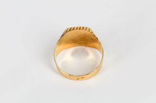 13450GM Anillo tipo sello de oro amarillo de 18kt. Talla original: 19 Peso: 21,63g. Notas importantes: La talla original de este anillo es 19, se puede ajustar el tamaño un par de números y este servicio está incluido en el precio. En el caso de querer otra medida indícalo en el apartado de comentarios en el carrito de la compra en el próximo paso, puedes consultar aquí nuestra guía de tallas de anillos. Esta pieza ha sido acondicionada en nuestro taller de Barcelona y se enviará el certificado de la misma por email. Si quieres probarte este anillo lo encontrarás en nuestra tienda de C/ Dante,113 de Barcelona.
