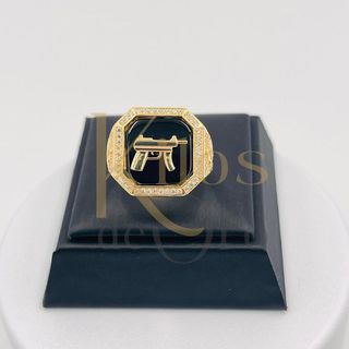 SELLO METRALLETA. Oro 18k. Peso: 10.13gr, Talla: 25, Piedras: Ónix y Circón. Joyería nueva, tenemos tienda física en Madrid, Ciudad Real, Alicante, Elche, Murcia, Granada. Ref.(596). NOTA: Puedes ver mas joyería en nuestro perfil.