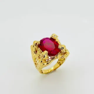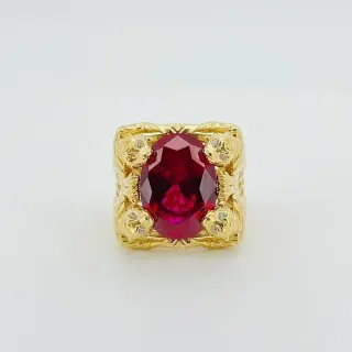 SELLO 4 PANTERAS CON PIEDRA OVALADA ROJA. Oro18K.
