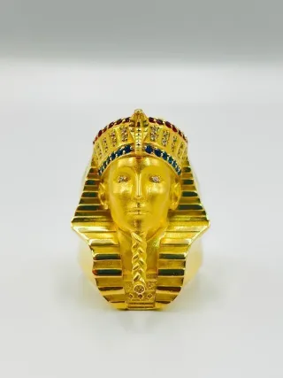 SELLO TUTANKAMON. Oro 18k. Peso: 31,66gr, Talla: 28, Piedras circón. Joyería nueva, tenemos tienda física en Madrid, Ciudad Real, Alicante, Elche, Murcia, Granada. Ref.(1268). NOTA: Disponible brazalete a juego Ref.(530) Puedes ver mas joyería en nuestro perfil.