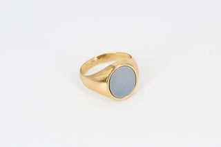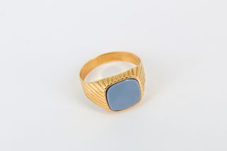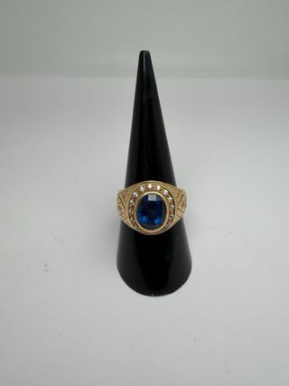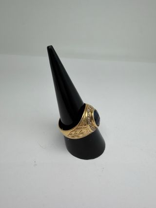 Anillo Sello Oro 18k Piedra Azul 7,22gr T: 21