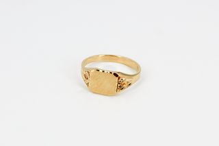 Anillo sello de oro de 18 quilates. - Diseño clásico y elegante. - Acabado pulido en la parte superior.