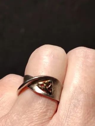 Anillo de plata Sterling con símbolo de la Trinidad irlandés en oro. Prestigiosa joyería Solvar. - Diseño entrelazado. - Sello de autenticidad. - Acabado pulido.