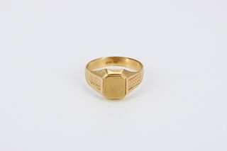Elegante anillo sello de oro amarillo de 18 quilates. - talla 11 - peso 3,6 - Diseño clásico y atemporal. - Acabado pulido brillante.