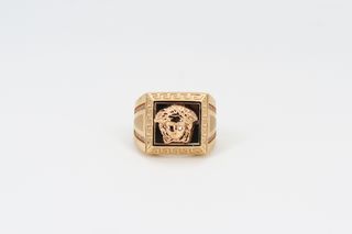 Anillo laminado en oro de 24k con sello de contraste 999 como garantía de la calidad del chapado en oro que tiene. -El metal interno es titanio cubierto por 60 micras de oro 24k. Espectacular color y brillo identico al oro real! Resistente al agua no pierde color. -Talla ajustable se abre y cierra a la medida deseada. -Magnifico anillo de oro sobre titanio con diseño griego antiguo. Es un anillo sello de oro sobre titanio cuyo sello es un impresionante águila trabajado en punta de diamante por eso tiene un brillo especial. Joyería artesanal hecho a mano. - Acabado brillante. -A estrenar con cajita y etique -Borde con patrón griego.