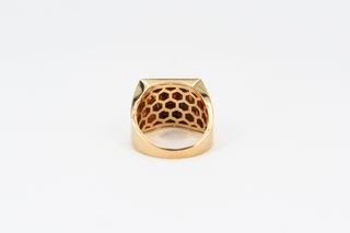 Sello de oro de 18k con circonitas. Peso: 13.66 g.