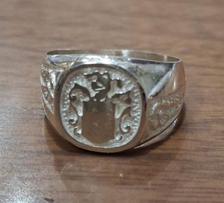 Anillo sello de plata maciza con un diseño de escudo central. Tiene talla 22 pero podemos adaptarlo a tu medida. y tambien lo podemos grabar a gusto. También lo hacemos en plata con baño de oro 24kt o también todo en oro 18kt. pedir presupuesto. - Plata maciza. - Superficie lisa para grabar. - Diseño detallado en los laterales.