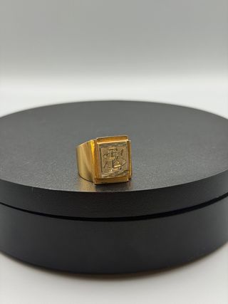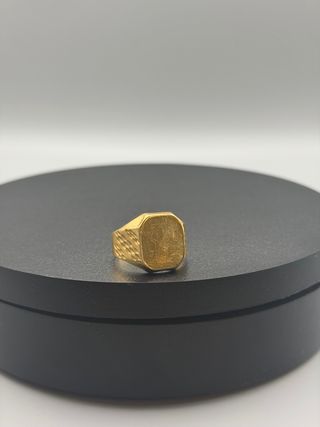 -Anillo de oro de 18k, tipo sello. ---------------------------------- ¡Peso y tallajes! ---------------------------------- -Peso: 5,21 gramos -medida: 26” ---------------------------------- -Contraste: ✅ --------------- -Kilataje: 18 Kilates, (750) con certificado en la pieza. --------------- -Fabricacion: Italia 🇮🇹 --------------------------------- -Somos tienda fisica, Tenemos mucha variedad de stock en oro preguntar para mas informacion Hacemos envio a Toda España 🇪🇸 y (Compramos oro) desde 70€