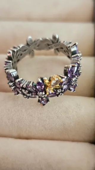 Anillo inspirado en la colección Herbario y Abeja de Los Bridgerton de Netflix by Pandora, plata sello 925 y cristales purpura