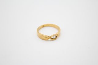 Elegante sortija de oro con un diamante. Adquirido en Joyería Petritxol de Bcn. Diamante de calidad. Mide 4mm más o menos. Oro 18 kt unos 4 gramos.