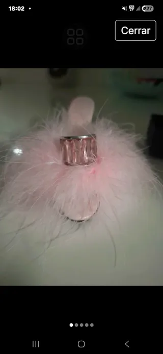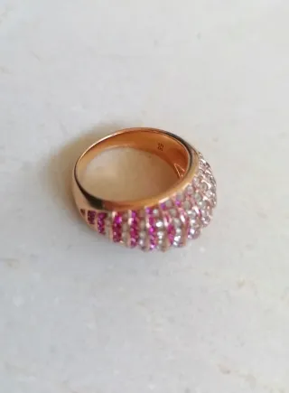 Elegante anillo de Swarovski con baño de oro rosa y detalles brillantes. - Diseño circular con circonitas. - Talla ajustable. Es talla 8 porque en el dedo que me va tengo anillos de 8