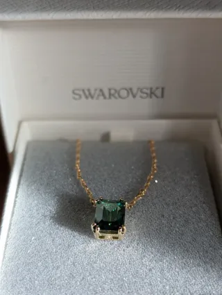 Elegante colgante de Swarovski con un llamativo cristal verde esmeralda. - Diseño moderno y sofisticado. - Cadena dorada delicada. - Está a estrenar, nunca se ha usado. - Si te llevas el anillo( a estrenar también) que tengo para vender a juego con el collar, te lo dejo el pack a 170€