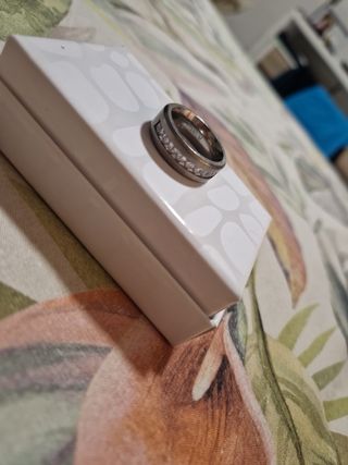 Elegante anillo con circonita central. - Diseño moderno y atractivo. - Banda con acabado cepillado y bordes pulidos. Valorado en 160€. Ya no lo quiero seguir usando.