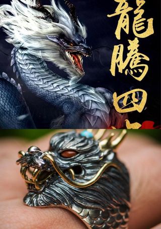 Anillo del Dragon de Titanio Protector Anillo ajustable.