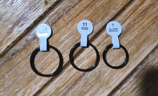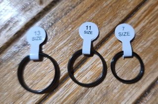 Tres anillos de titanio negro, lisos y elegantes. Ideales para un look moderno y minimalista. - Tallas disponibles: 7, 11 y 13. - Material: Titanio. - Acabado: Negro. Talla 13 = 20,4 mm 3€ Talla 11 = 20,2 mm 3€ Talla 7 = 20mm 3€ Nuevos sin estrenar