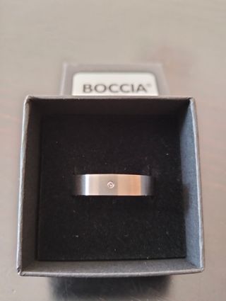 Elegante anillo de la marca Boccia Titanium. Anillo plano con acabado combinado de matizado y pulido. Diamante de 0,025 quilates como detalle. Los anillos de la marca Boccia se caracterizan por su alta calidad, durabilidad, ligereza y propiedades hipoalergénicas, lo que los hace ideales para personas con alergias a metales. (Talla: 13 EE.UU/ 22,6mm) - Material: Titanio.
