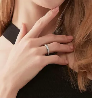 1 pza. Anillo ancho de moda hecho de titanio plateado con circonita brillante incrustada. Combina con atuendos diarios. Adecuado para todos los géneros. Joyería para parejas. Ref.